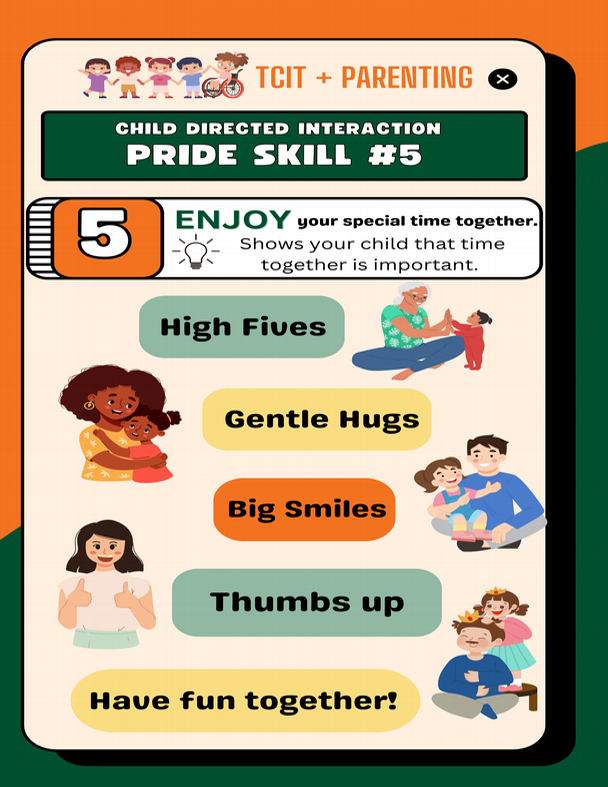 At the heart of strong family relationships is connection, and that's exactly what PCIT (Parent-Child Interaction Therapy) helps build. One powerful way to support your child is by using the PRIDE skills: Praise, Reflect, Imitate, Describe, and Enjoyment. These skills make everyday moments more positive and meaningful.